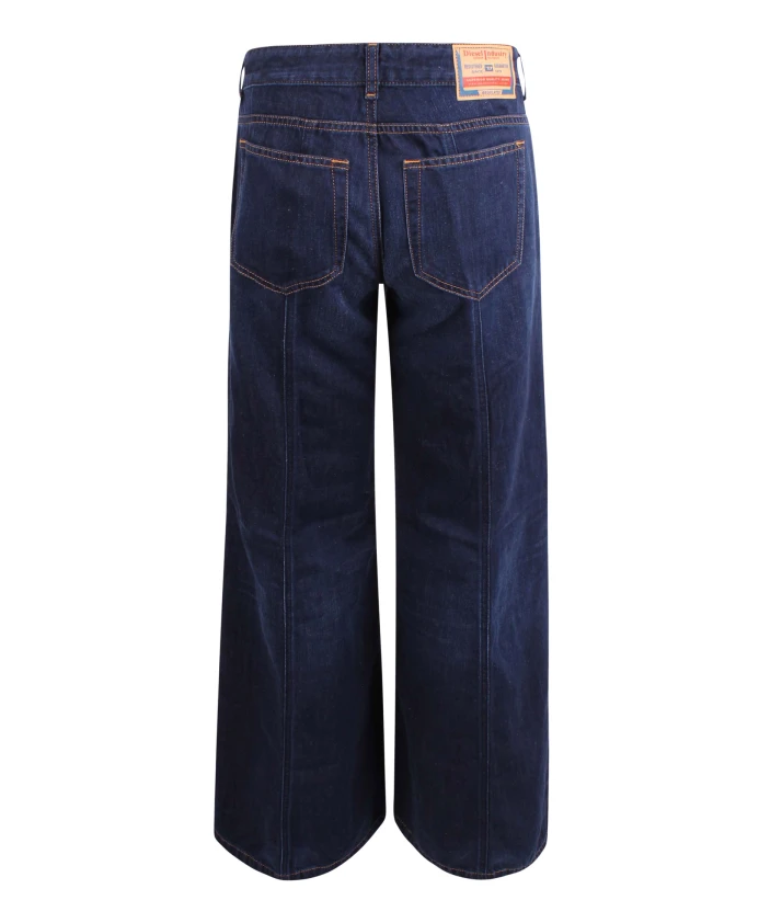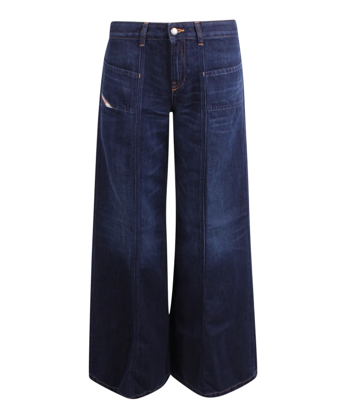 Расклешенные джинсы Diesel D-Akii сочетают в себе низкую посадку и широкие прямые штанины, что позволяет создавать универсальные образы как для дневного, так и для вечернего выхода. Ключевые особенности: Синий цвет | Застежка на пуговицу и молнию | Шлевки для ремня | Боковые карманы | Низкая посадка | Широкие прямые штанины | Открытая строчка спереди и сзади | Размеры и посадка: Низкая посадка | Широкие прямые штанины