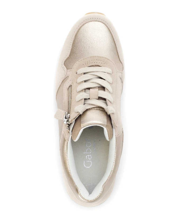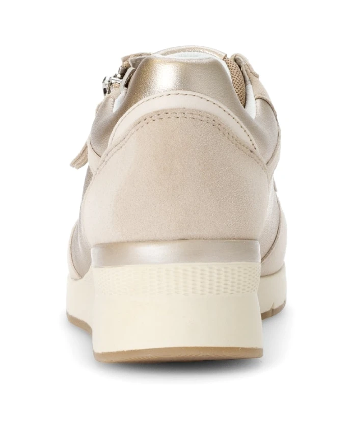 Откройте для себя кроссовки Gabor Louisina Wedge Sneakers - классическую модель из коллекции Gabor, созданную для комфорта и стиля. Благодаря мягкому кожаному верху и функциональной застежке-молнии эти кроссовки идеально подходят для повседневной носки. Ключевые особенности: Бежевый | Металлик | Кожа | Функциональная застежка-молния | Танкетка 35 мм | Мягкая резиновая подошва на танкетке | Размер и посадка: Ширина G |