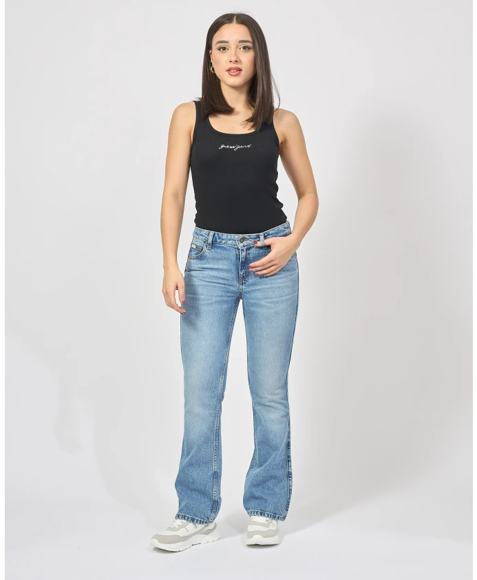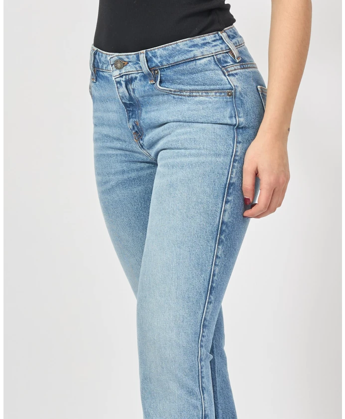 Джинсы-клеш снова в моде. Эта модель сочетает в себе культовый деним GUESS JEANS и GUESS AIRWASH в новом крое, вдохновленном беззаботным стилем 90-х. Детали: Джинсы-клеш из эластичного денима, светло-индиговый оттенок. Средняя посадка, облегающие в бедрах. Обычный крой с расклешенными штанинами. Пять карманов. Застежка на молнию и пуговицу. Модель носит размер 26 US (+14 для итальянского размера) и имеет рост 160 см.