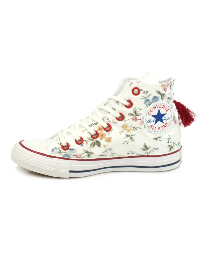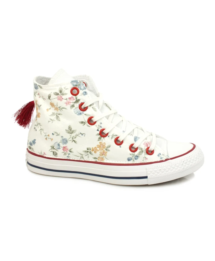 Кеды Converse с цветочным принтом и шнуровкой, идеально подходящие для повседневного образа. Модель имеет закругленный носок и петлю на пятке для удобства надевания и снимания. Ключевые особенности: Разноцветные | Белый | Оптически белый | Красный | Черный | Ткань | Шнуровка | Закругленный носок | Петля на пятке | Цветочный принт | Лимитированная серия | Состав и уход: Верх: Ткань | Подкладка: Ткань | Подошва: Резина