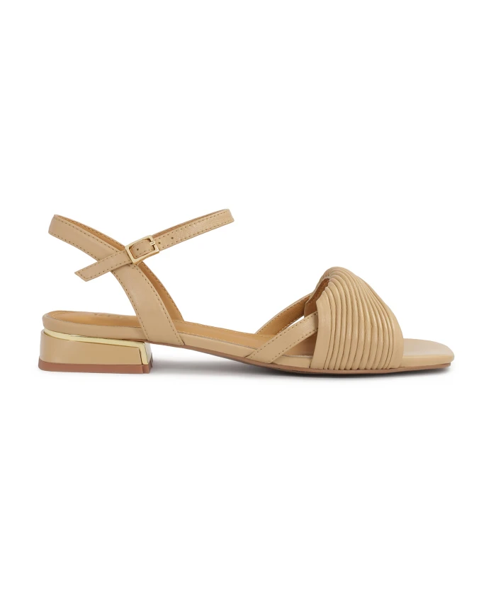 Низкие кожаные сандалии Kazar бежевого цвета - стильный и универсальный выбор для теплых дней, сочетающий комфорт и элегантность благодаря классическому дизайну. Ключевые особенности: Бежевый | Натуральная кожа | Удобный широкий каблук | Передний ремешок с золотистыми металлическими деталями | Размер и посадка: Стандартная | Состав и уход: Подкладка из полуанилиновой овчины | Подошва из кожи тунискула | Не указано