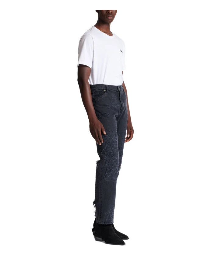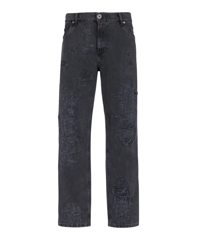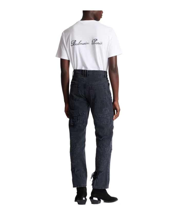 Прямые, потертые, отремонтированные джинсы Balmain, черный