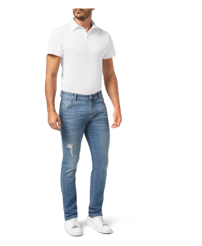 Джинсы Billionaire Jeans Straight Cut CREST сочетают в себе классический деним с пятью карманами и фирменный герб бренда, предлагая лаконичный прямой силуэт для повседневной носки. Ключевые особенности: Синий | Светло-синий | Эластичная ткань | Застежка на молнию и пуговицу | Шлевки для ремня | Классический дизайн с пятью карманами | Герб на заднем кармане | Металлические заклепки | Размеры и посадка: Прямой крой