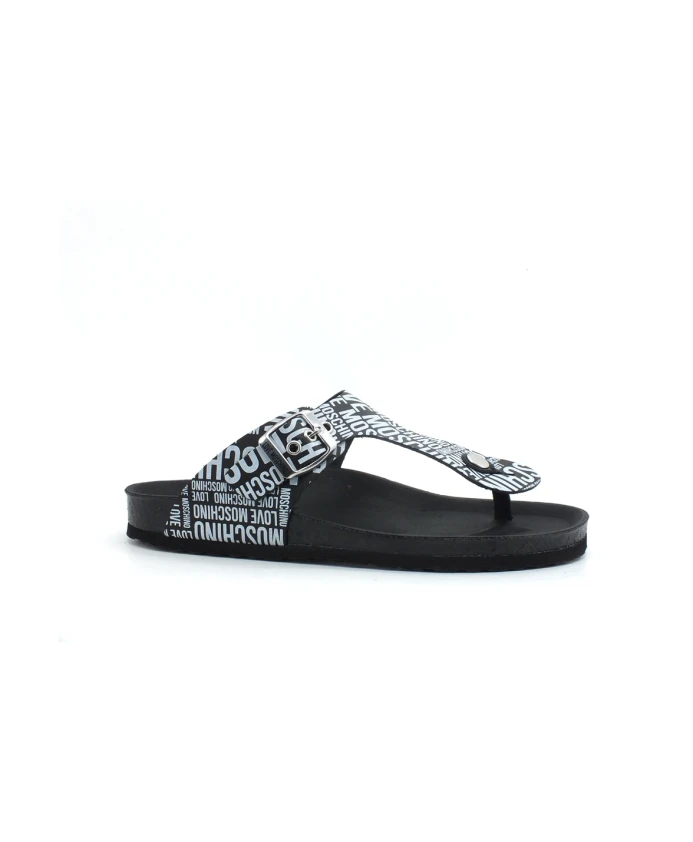 Сандалии Love Moschino Slide в двухцветном черно-белом исполнении. Сандалии без шнурков с верхом из материала Eco-Pelle и резиновой подошвой, созданные для повседневной носки в теплую погоду. Ключевые особенности: Черный | Белый | Eco Pelle | Застежка без шнурков | Резиновая подошва | Открытый носок | Силуэт шлепанцев | Коллекция весна/лето | Состав и уход: Верх: Eco Pelle | Подкладка: Eco Pelle | Подошва: Резина