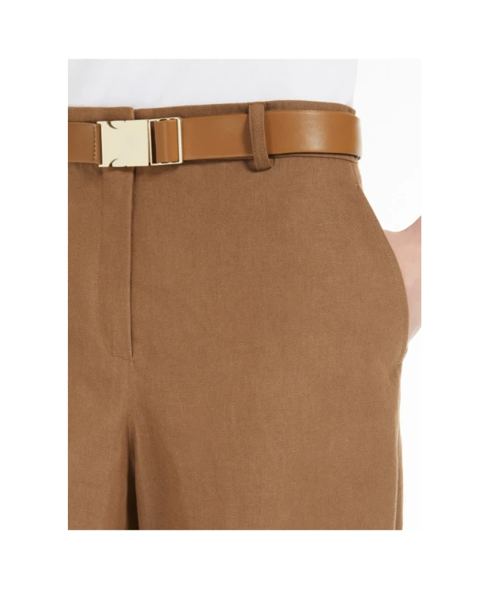 Брюки из хлопка и льна Max Mara, коричневый