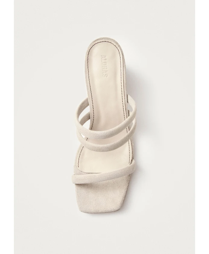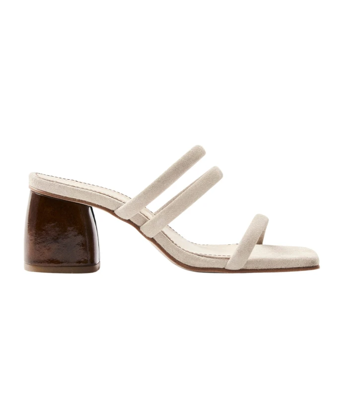 Мюли из бежевой замши с тонкими ремешками и массивным каблуком. Сандалии Indiana имеют простой силуэт без застежек с тремя ремешками. Изготовленные из мягкой на ощупь бежевой кожи, они опираются на лакированные деревянные массивные каблуки, слегка изогнутые, чтобы подчеркнуть квадратный носок. Наша обувь соответствует стандартному размеру. Если вы находитесь между размерами, мы рекомендуем выбрать меньший размер.