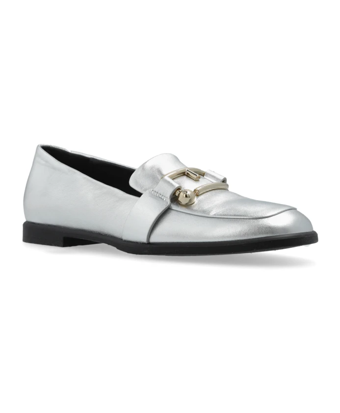 Представляем лоферы Novola от Furla. Эти серебристые туфли имеют классический закругленный носок и плоскую резиновую подошву для комфорта и долговечности. Металлическая отделка и элегантная золотая пряжка добавляют шика повседневным нарядам. Ключевые характеристики: Серебристый | Серый | Кожа | Закругленный носок | Плоская резиновая подошва | Металлическая отделка | Золотая пряжка | Состав и уход: Кожа | Резина