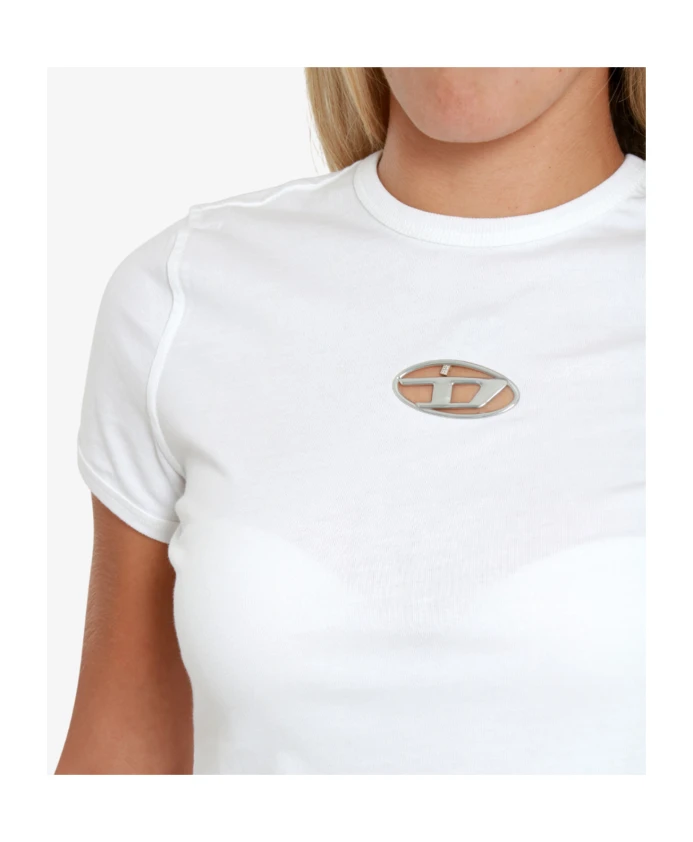 Футболка Diesel T-Uncutie D Logo - это облегающая футболка из хлопкового трикотажа с овальной нашивкой в виде буквы D на груди, идеально подходящая для повседневной носки и многослойных образов. Основные характеристики: Белый | Хлопок | Круглый ребристый воротник | Короткие рукава с ребристыми манжетами | Овальная нашивка в виде буквы D на груди | Размеры и посадка: Облегающий крой | Состав и уход: 100% хлопок