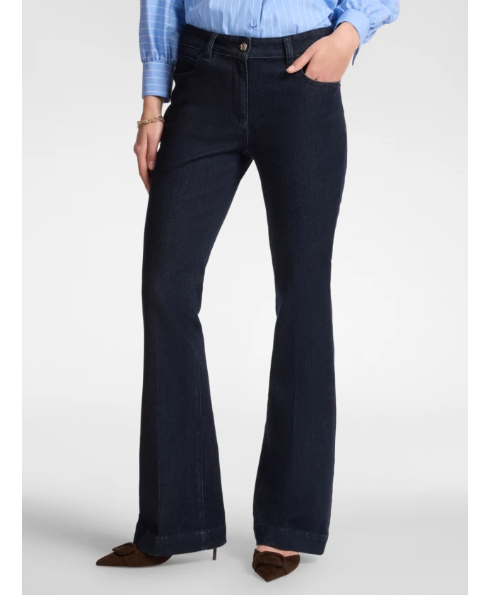Описание товара: - Классические джинсы-клеш из темно-синего эластичного денима - 5 карманов, застежка спереди - Расклешенные штанины, отглаженные складки. Состав и уход: - Основная ткань: 80% хлопок, 19% полиэстер, 1% эластан; основная подкладка: 65% полиэстер, 35% хлопок - Бережная стирка при 30°C; не сушить в сушильной машине; не отбеливать; только химчистка; не гладить при высокой температуре (макс. 110°C)