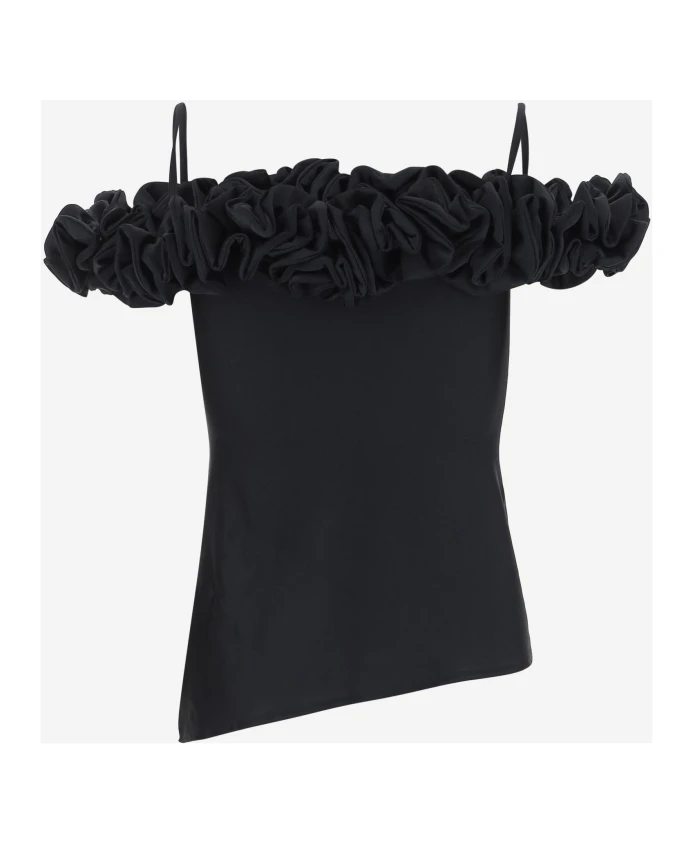 Эластичный трикотажный топ с оборками Coperni, черный 33 668₽