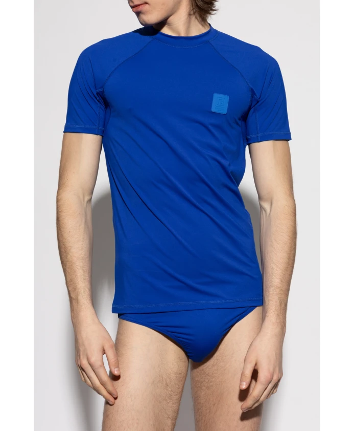Представляем купальную футболку Balmain Paris - идеальное сочетание функциональности и стиля для пляжа или бассейна. Преобладающий синий оттенок излучает элегантность и свежесть, а гладкая, эластичная ткань обеспечивает комфорт в жаркие дни. Основные характеристики: Синий | Гладкая и эластичная ткань | Быстросохнущая | Короткие рукава | Круглый вырез | Логотип на груди | Размер и посадка: Классический крой |