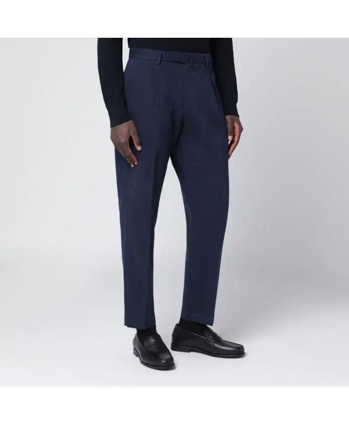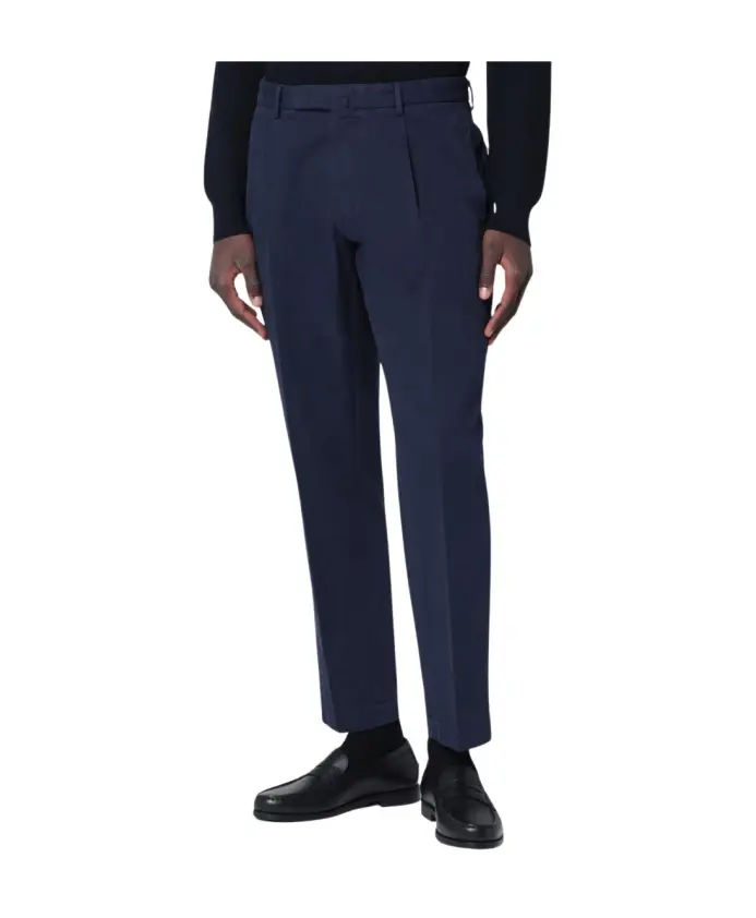 Брюки Santaniello Biagio сочетают в себе изысканный итальянский крой и мягкую смесь хлопка и кашемира, предлагая вариант в стиле smart-casual для офисных дней и элегантных выходных. Ключевые особенности: Синий | Хлопок | Шлевки для ремня | Боковые карманы | Задние карманы | Застежка на крючок и молнию | Складки спереди | Прямые манжеты | Классический, классический дизайн | Размеры и посадка: Зауженный крой