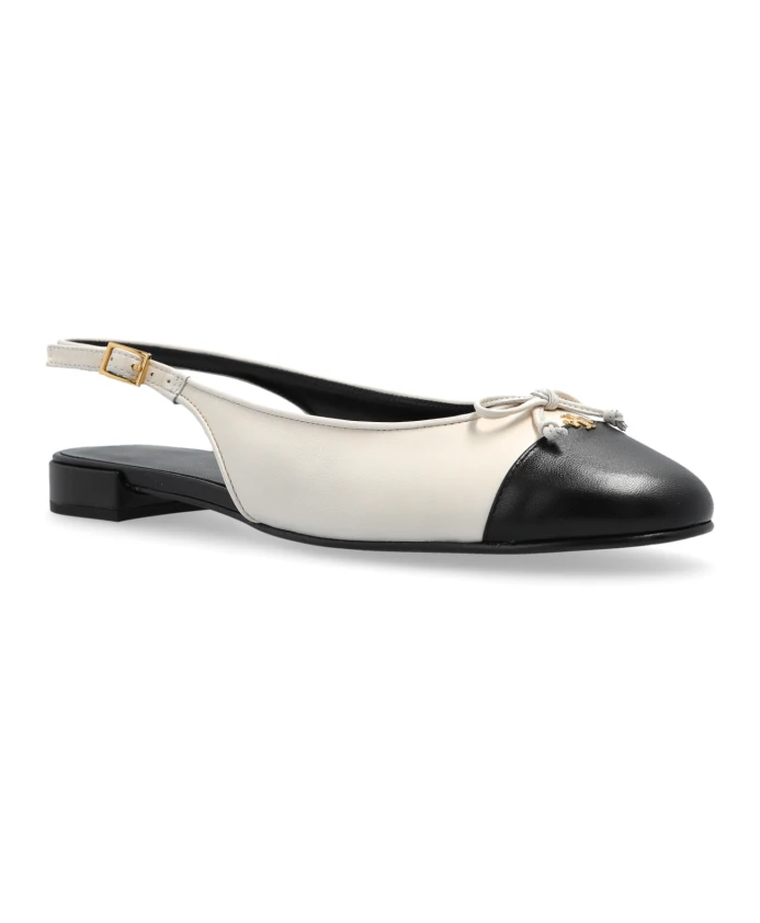 Балетки-слингбэки с мыском от Tory Burch - идеальное сочетание элегантности и комфорта. Они выполнены в шикарном кремово-черном дизайне с изысканной золотой пряжкой. Ключевые особенности: Кремовый | Черный | Кожа | Открытый каблук с ремешком | Золотая пряжка | Изящный бант с металлическим декором | Размер и посадка: Стандартная | Состав и уход: Кожа | Чистить сухой тканью и хранить в пылезащитном мешочке.