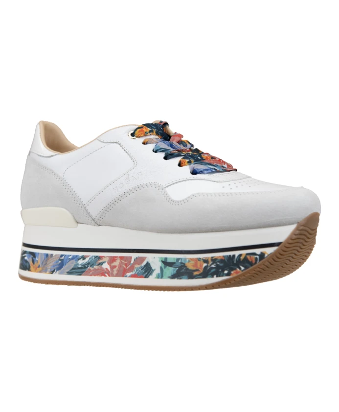 Расширьте свою коллекцию кроссовок с помощью этих женских кроссовок Hogan. Изготовлены в Италии из смеси гладкой и замшевой кожи, с глянцевой кожаной накладкой и разноцветными шнурками. Кожаная подкладка и съемная стелька обеспечивают комфорт, а прочная резиновая подошва гарантирует долговечность. Идеально подходят для модниц. Обувь Hogan обычно большемерит; рекомендуется заказывать на один размер меньше.
