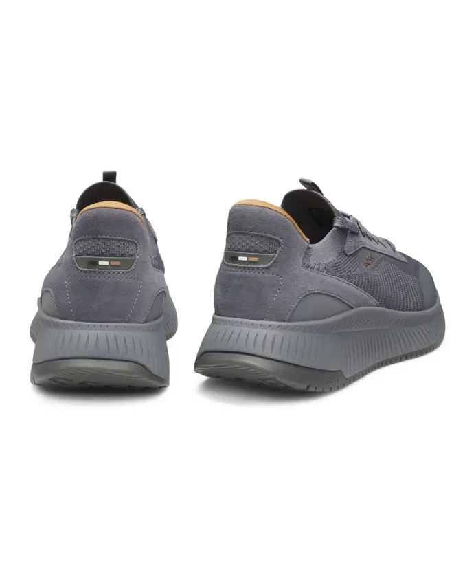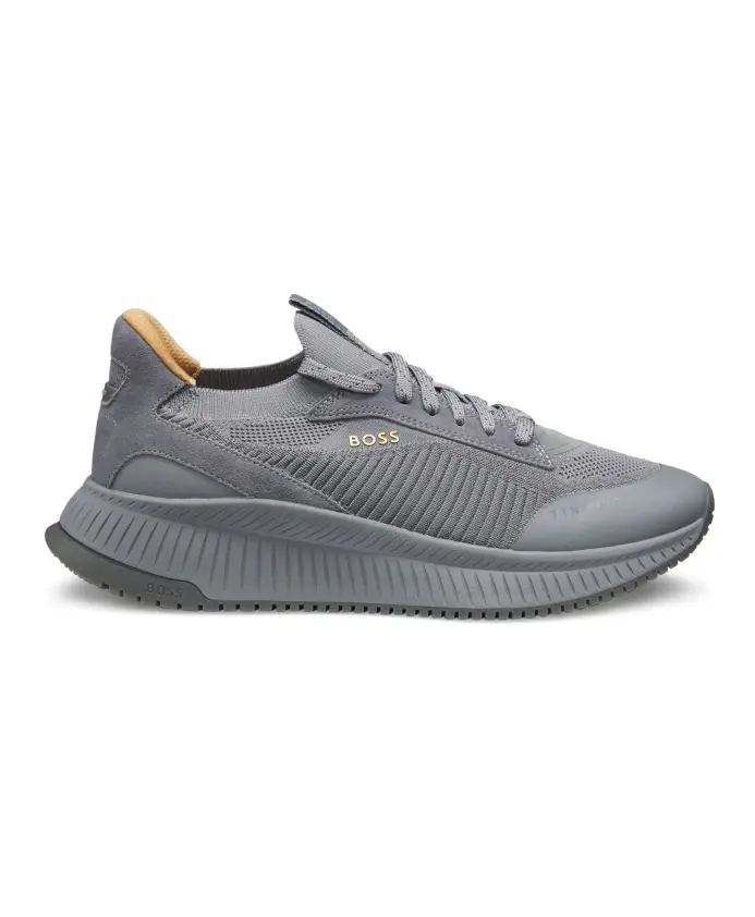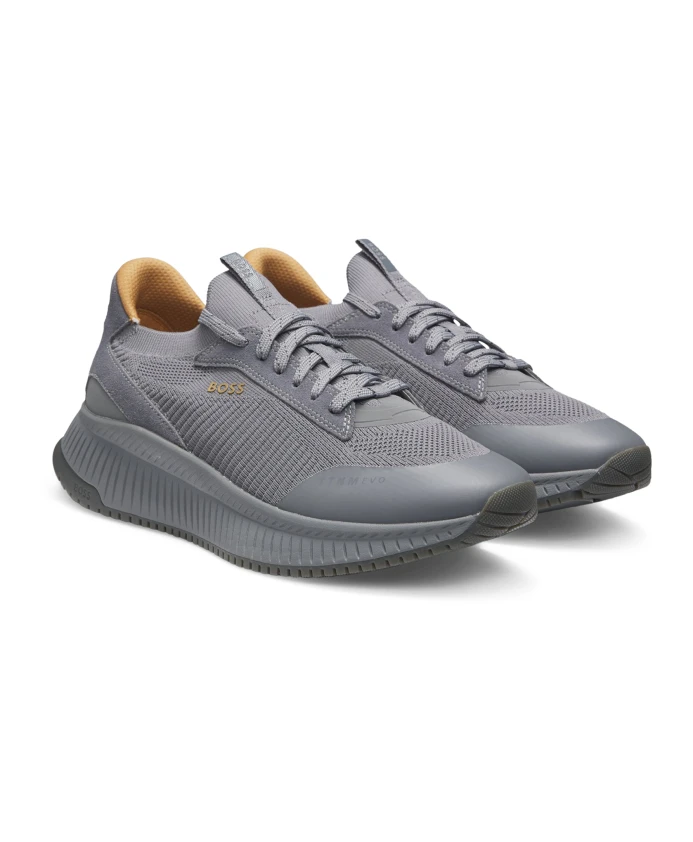 Кроссовки Hugo TTNM EVO сочетают в себе вязаный верх и рифленую подошву, создавая спортивные и легкие кроссовки. Дизайн ориентирован на повседневный комфорт, отличается лаконичными линиями и фирменным брендингом. Ключевые особенности: Серый | Средне-серый | Кожа, вязаный текстиль | Рифленая подошва | Легкая конструкция | Шнуровка | Частичная подкладка | Вязаный верх | Фирменный брендинг | Рифленая подошва