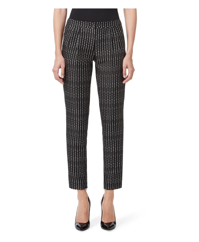 Зауженные брюки от Philipp Plein сочетают в себе эластичную вискозу и шерстяной трикотаж с тонкой полоской, украшенной кристаллами, создавая элегантный вечерний образ. Ключевые особенности: Черный | Вискоза и шерстяной трикотаж | Эластичная ткань | Пояс на одной пуговице | Два передних кармана | Тонкая полоска, украшенная кристаллами | Размеры и посадка: Зауженный крой | Состав и уход: Вискоза | Шерсть
