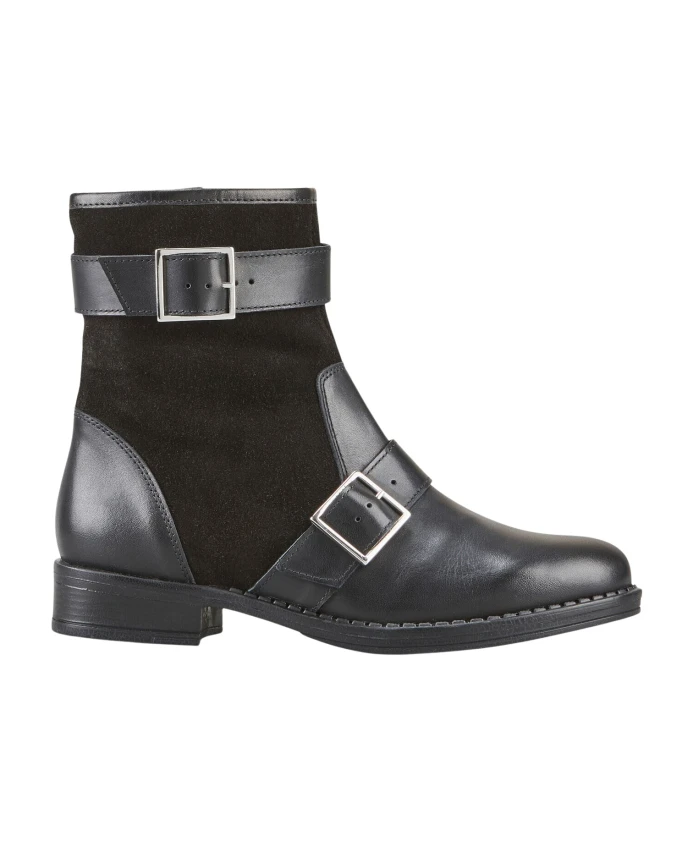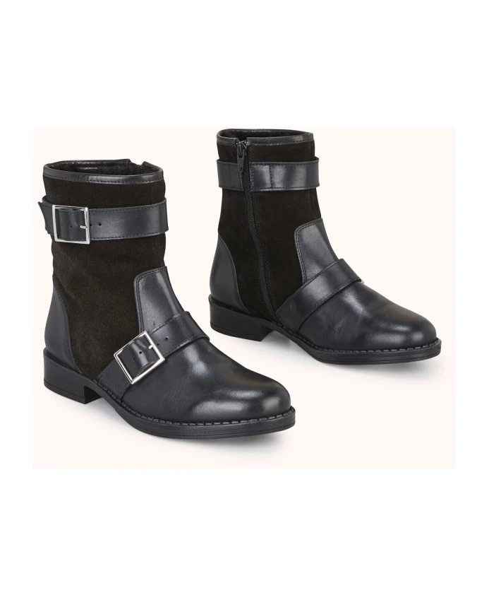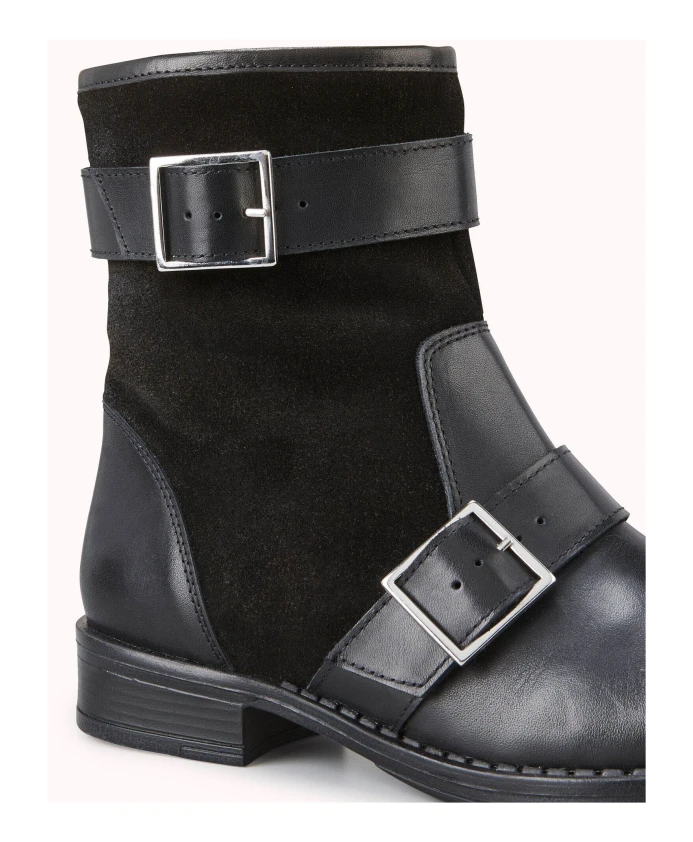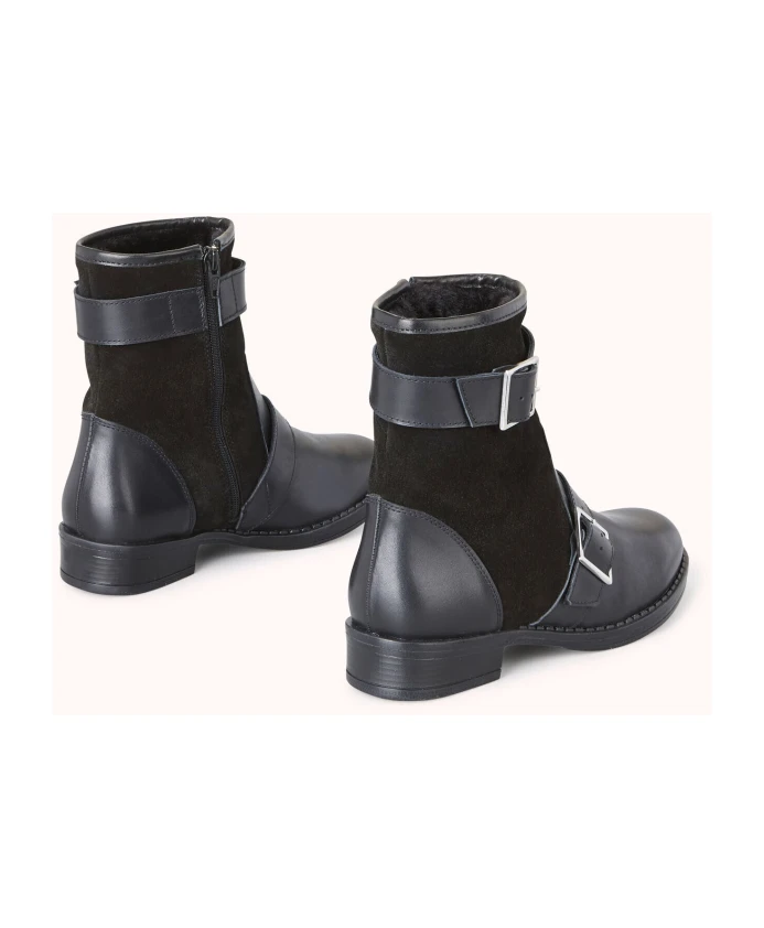 Ботинки FINAI Flat Boot от Cosmoparis - это байкерские ботинки до щиколотки, созданные для комфортной зимы. Верх из замши и гладкой кожи в сочетании с синтетической подкладкой обеспечивает тепло и стиль. Ключевые особенности: Черный | Замша и гладкая кожа | Две пряжки на голенище | Размер и посадка: Стандартная | Состав и уход: Замша | Гладкая кожа | Синтетическая подкладка | Протирать влажной тканью