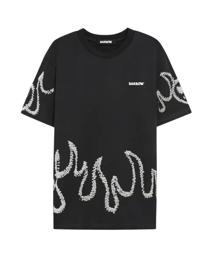 Футболка Barrow Jersey от Barrow - это мягкая хлопковая футболка с напечатанным логотипом и вышивкой бисером, создающая стильный повседневный образ. Основные характеристики: Черный | Черный | Хлопок | Круглый вырез | Короткие рукава | Напечатанный логотип на груди | Декоративная вышивка бисером на передней части, рукавах и подоле | Размеры и посадка: Мягкий крой | Состав материала и уход: 100% хлопок