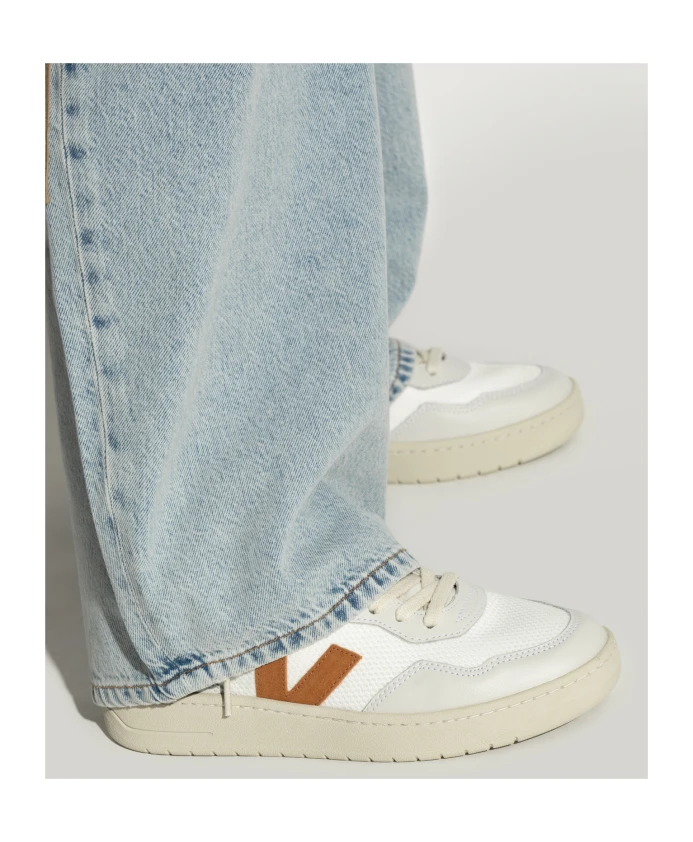 Представляем кроссовки B-MESH от Veja. Эта обувь сочетает в себе спортивный стиль и элегантность и идеально подходит как для повседневной носки, так и для официальных мероприятий. Белый цвет с едва заметными коричневыми акцентами и культовым логотипом «V» делают их выдающимся выбором. Ключевые особенности: Белый | Коричневый | Сетка | Дышащая ткань | Оригинальный логотип «V» | Надпись Veja на пятке |
