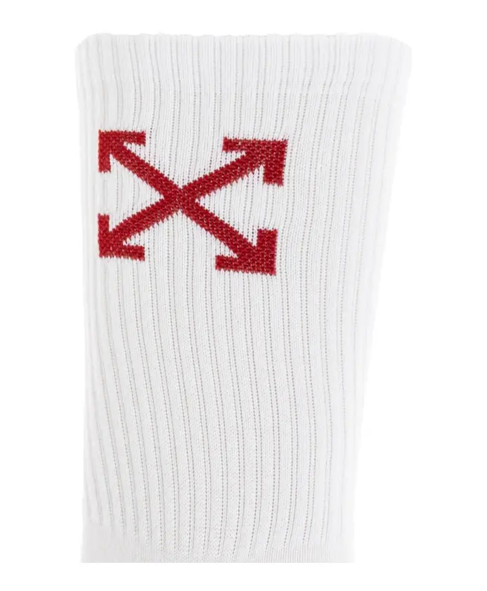Носки LOGO от Off-White воплощают в себе суть изысканной современности, органично сочетая комфорт и роскошь. Изготовленные из ребристой эластичной трикотажной ткани, они нежно обволакивают стопу, обеспечивая при этом долговечность и исключительный комфорт. Классический дизайн до щиколотки дополняет минималистичную эстетику - весь дизайн выполнен в универсальном белом цвете с ярким красным акцентом.