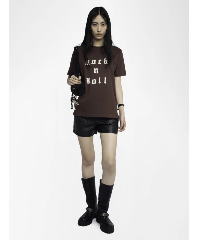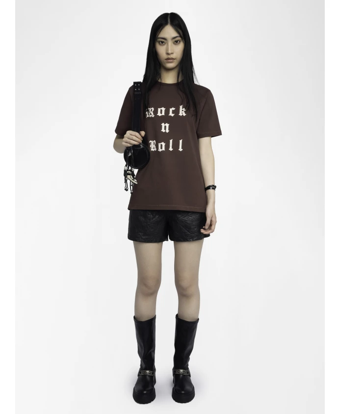 Футболка Zadig & Voltaire Edwin - это свободная хлопковая футболка с принтом в стиле рок-н-ролл, украшенным стразами, которая добавит изюминку любому повседневному образу. Ключевые особенности: бордовый цвет | хлопок | круглый вырез | короткие рукава | графический принт в стиле рок-н-ролл, украшенный стразами | принт расположен спереди | Размер и посадка: свободный крой | Состав и уход: 100% хлопок