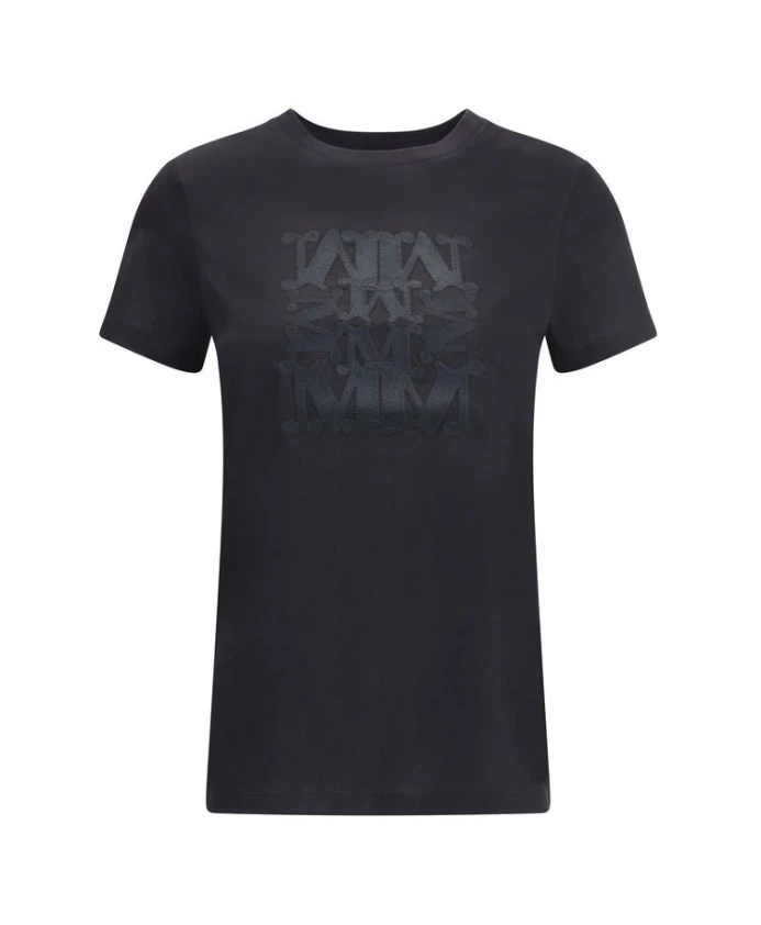 Футболка Max Mara с вышитой монограммой - мягкая хлопковая трикотажная футболка от Max Mara с изящной вышивкой монограммы в тон ткани для создания утонченного повседневного образа. Ключевые особенности: Черный | Хлопок | Круглый вырез горловины с микроребрами | Короткие рукава | Вышитая монограмма в тон ткани на передней части | Размеры и посадка: Стандартный крой | Состав ткани и уход: 100% хлопок