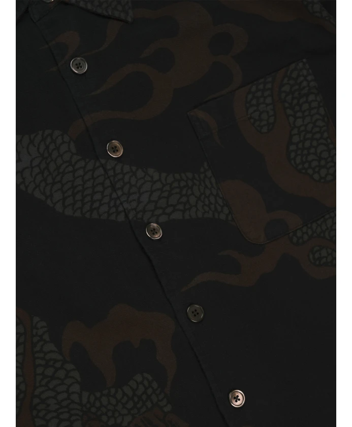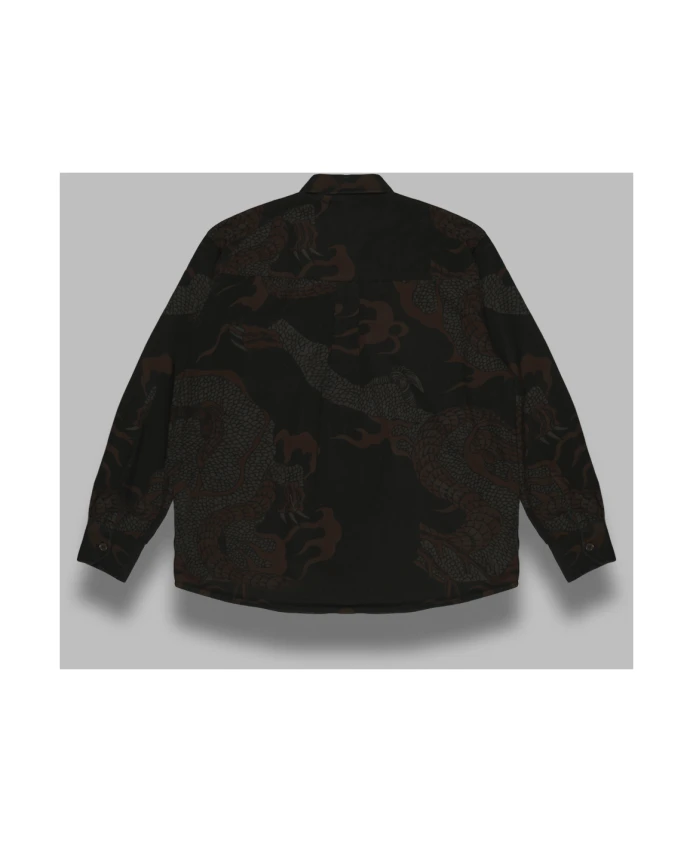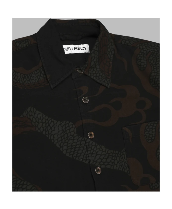Наша рубашка Legacy Above сочетает в себе эффектный абстрактный змеиный принт и свободный, слегка оверсайз силуэт - идеально подходит для повседневных многослойных образов с выразительными деталями. Ключевые особенности: Коричневый | Хлопок | Перламутровые пуговицы | Абстрактный змеиный принт | Закругленный низ | Манжеты под углом | Размеры и посадка: Слегка оверсайз | Материал и уход: 100% хлопок