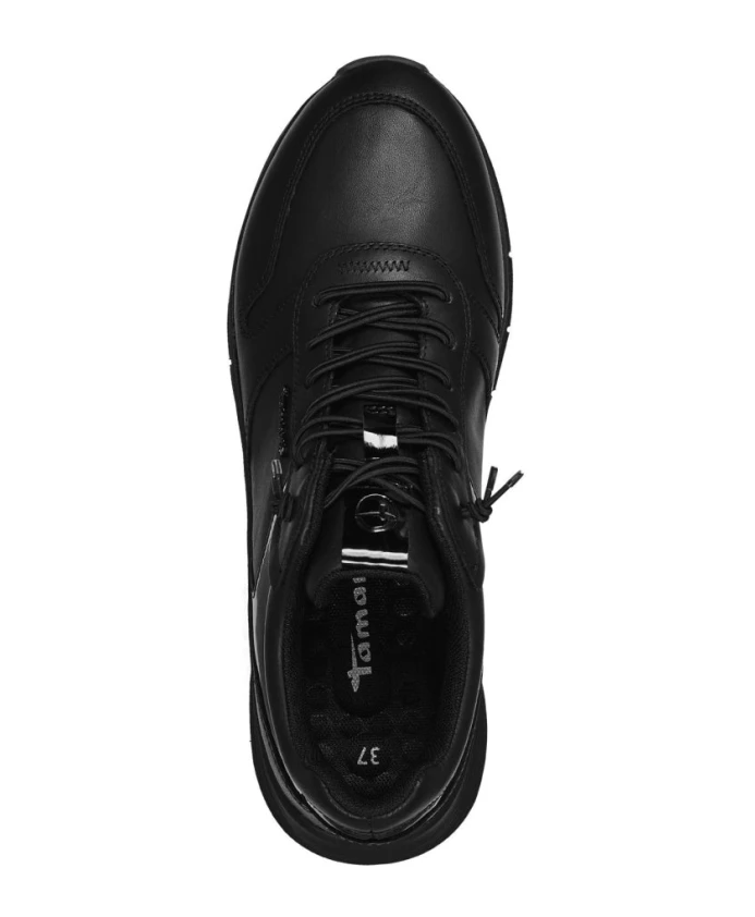 Представляем кожаные кроссовки Tamaris черного цвета для тех, кто ценит стиль и комфорт. Эти кроссовки имеют элегантный кожаный верх и устойчивую платформу, идеально подходящую для повседневной носки. Ключевые особенности: Черный | Кожа | Шнуровка для регулировки ширины | Платформа 3,5 см | Размер и посадка: Стандартная посадка | Состав и уход: Кожаный верх | Текстильная подкладка | Не указано