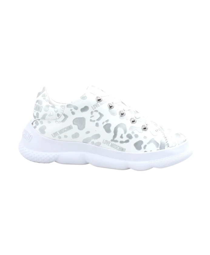 Кроссовки Love Moschino из кожи с резиновой подошвой, созданные для повседневной городской носки. Четкие линии и закругленный носок делают их универсальным вариантом низких кроссовок для повседневных образов. Ключевые особенности: Белый | Серебристый | Кожа | Резиновая подошва | Шнуровка | Закругленный носок | Низкий силуэт | Состав и уход: Верх: Кожа | Подкладка: Ткань/Кожа | Подошва: Резина