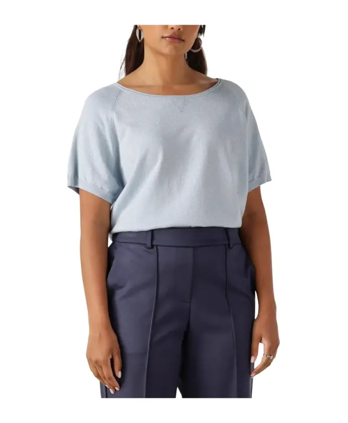 Топ NUKUS Anita Lurex сочетает в себе легкий мерцающий люрекс и легкий трикотаж, создавая высококачественный повседневный образ. Носите его под кардиганом или с джинсами для создания стильного сезонного образа. Ключевые особенности: Синий | Светло-синий | Вискоза | Круглый вырез | Короткие рукава | Детали из люрекса | Легкий трикотаж | Состав и уход: 60% вискоза | 22% полиэстер | 18% полиамид