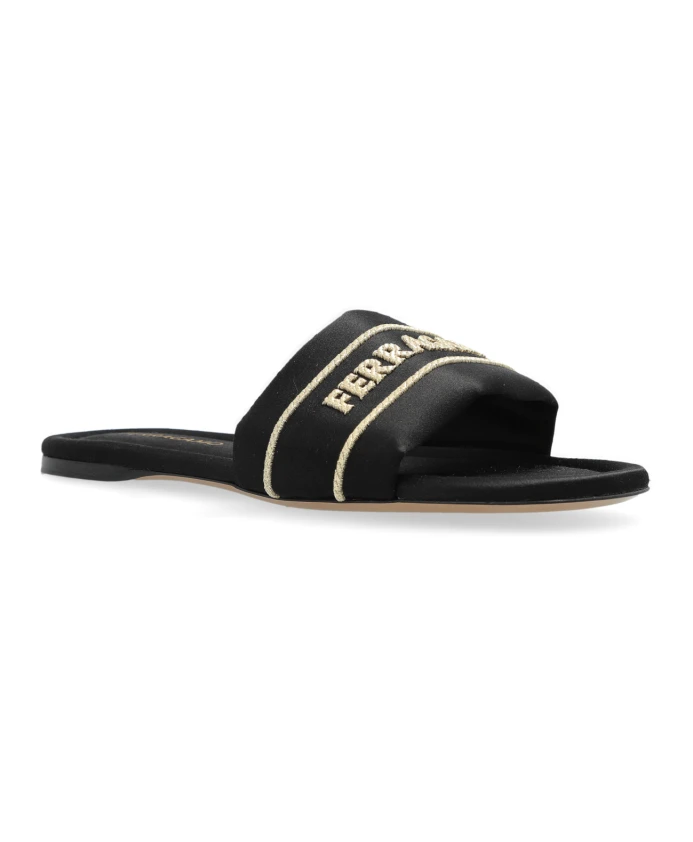 Атласные мюли с логотипом Ferragamo, черный