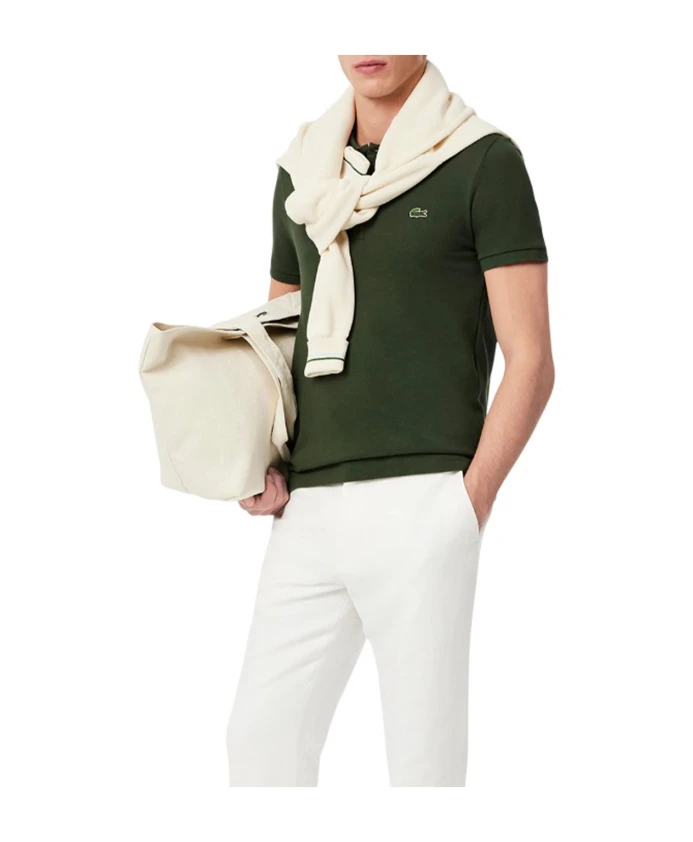 Рубашка-Поло в рубчик, приталенный крой Lacoste, зеленый