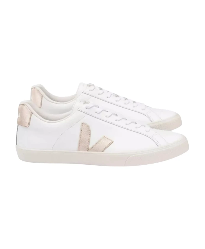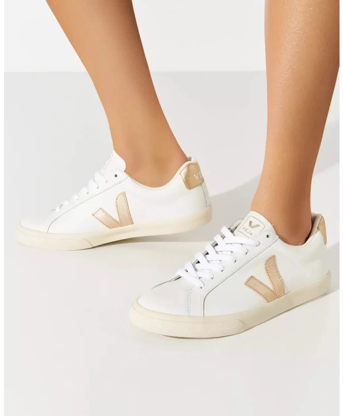 Откройте для себя элегантные и стильные белые кожаные кроссовки Veja с эффектной светло-золотистой V-образной деталью сбоку. Эти кроссовки сочетают классический дизайн с современным комфортом, что делает их идеальными для повседневной носки. Ключевые особенности: Белый | Светло-золотистая кожа | Кожа | Удобная, мягкая стелька | Классическая шнуровка | Круглый носок | Видимый, тисненый логотип