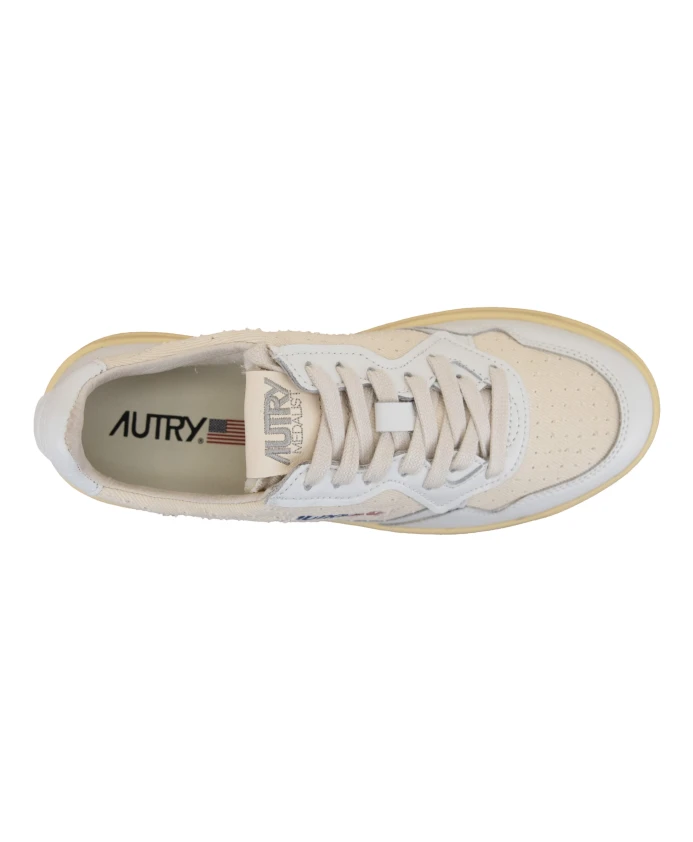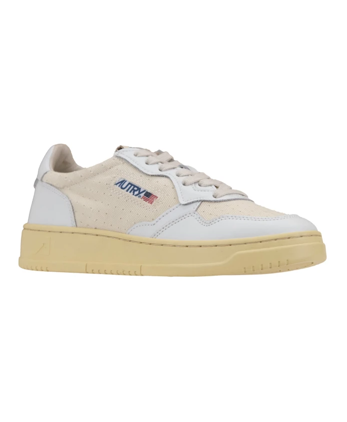 Кроссовки из кожи и ткани со шнуровкой Autry, белый
