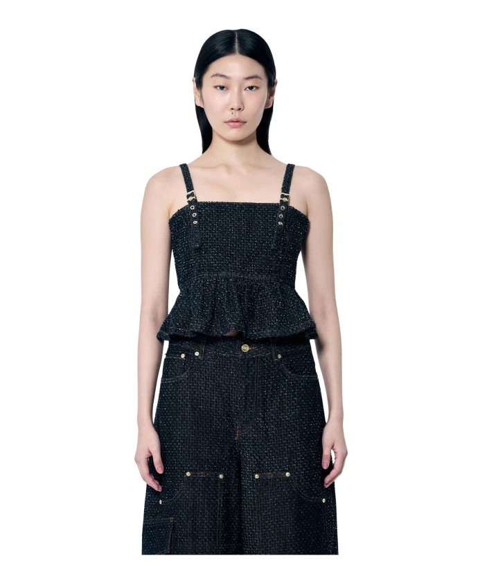 Пушистый джинсовый топ с баской Ganni, черный