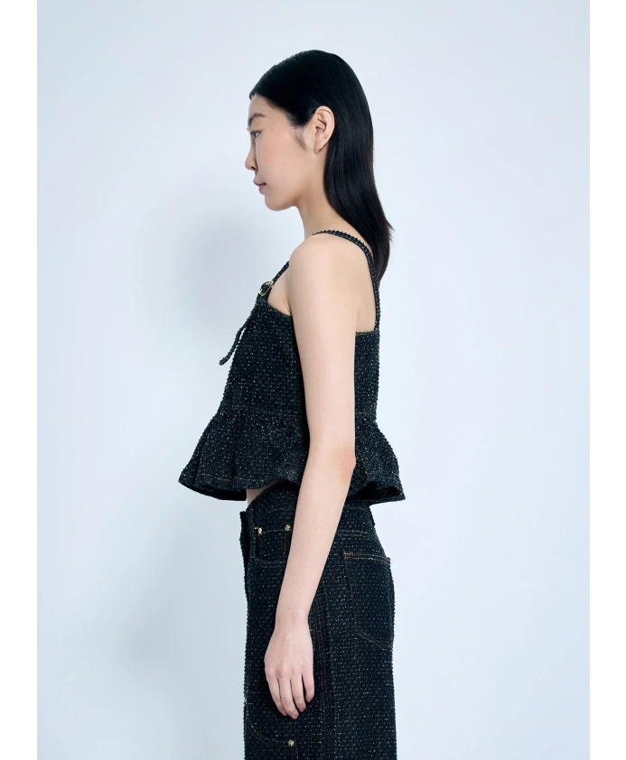 Пушистый джинсовый топ с баской Ganni, черный 32 480₽