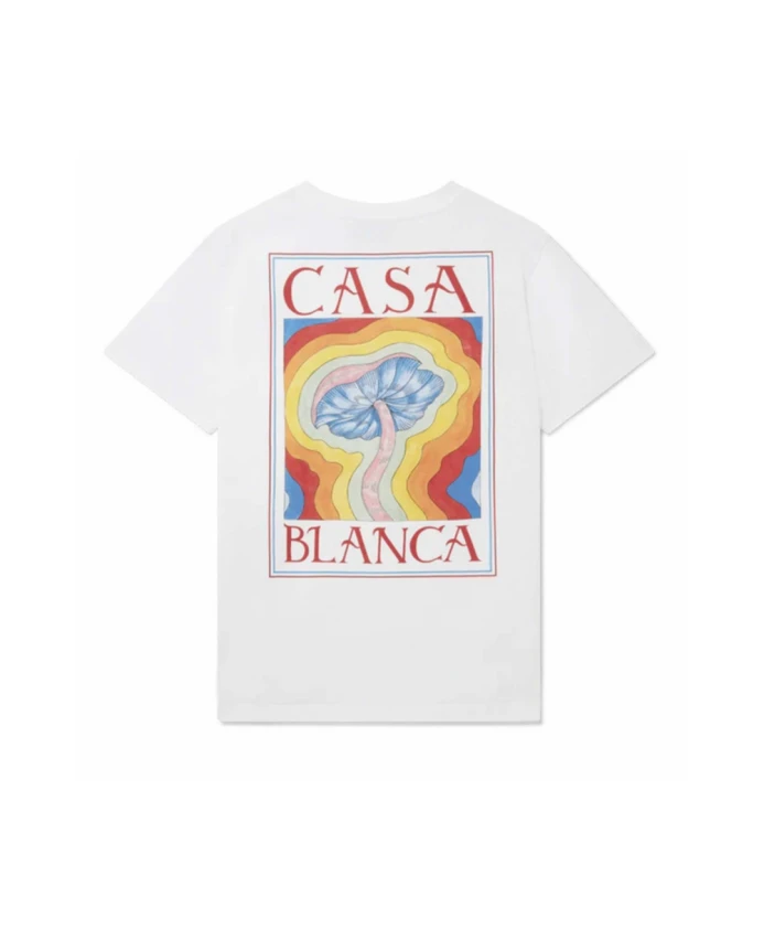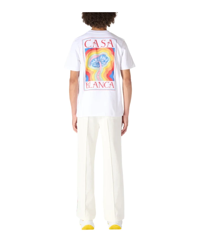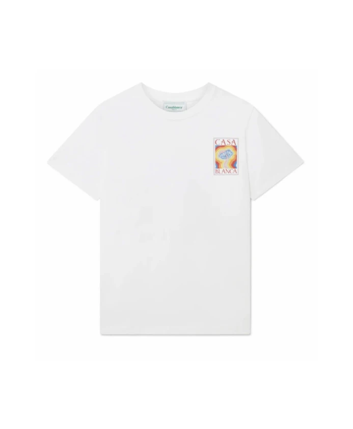 Casablanca представляет футболку Mind Vibrations с принтом, белую трикотажную модель с ключевым мотивом из нашей коллекции Весна/Лето 2023. Изготовлена из 100% органического хлопка, имеет классический круглый вырез, короткие рукава и свободный крой. Легко стирается в машине. Сделано в Португалии. Размер соответствует стандартному, выбирайте свой обычный размер. Рост модели 187 см, размер M.