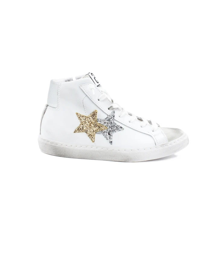 Кроссовки 2STAR High - кожаные высокие кроссовки с двойной застежкой (шнурки и молния) и прочной резиновой подошвой, предназначенные для повседневной городской носки. Ключевые особенности: Белый | Кожа | Резиновая подошва для сцепления | Шнуровка с боковой молнией | Кожаная подкладка | Высокий силуэт | Круглый носок | Состав материала и уход: Верх: Кожа | Подкладка: Кожа | Подошва: Резина
