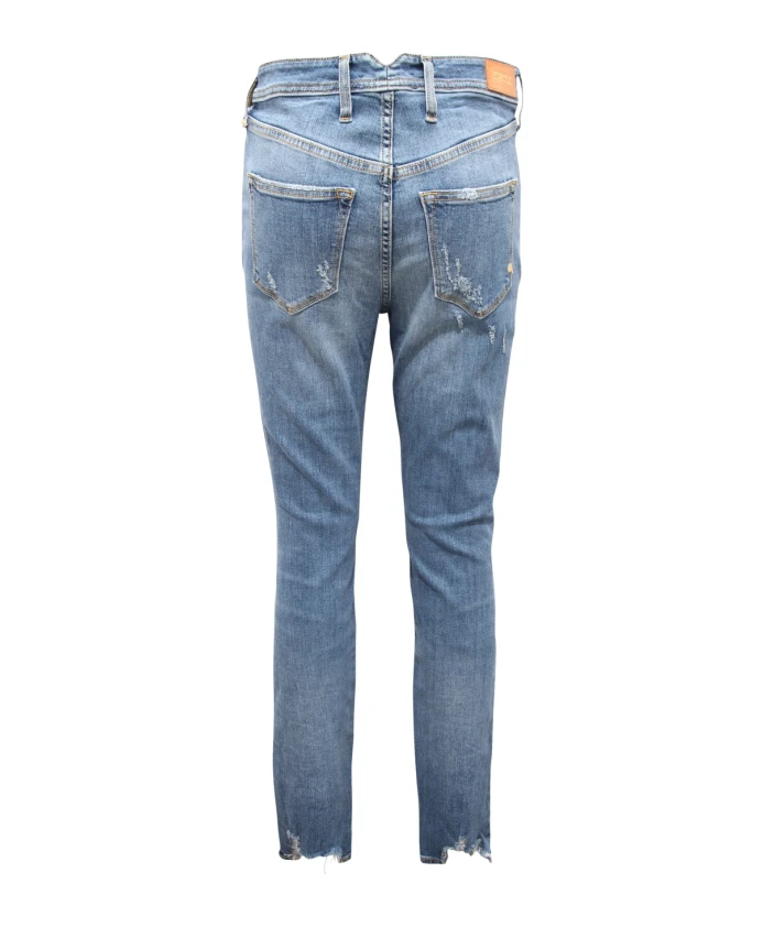 Придайте своему стилю изюминку с помощью этих узких джинсов с высокой талией в модном винтажном стиле с потертыми деталями. Сделанные в Италии, эти джинсы станут настоящим модным заявлением. Ключевые особенности: Синий | Деним | Шлевки для ремня | Застежка на пуговицу по центру | Эффект потертости с разрывами | Высокая талия | Зауженные штанины | Узкий крой | Размеры и посадка: Узкий крой