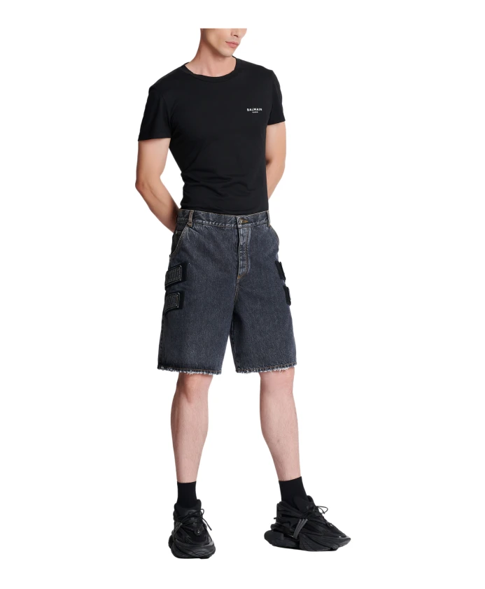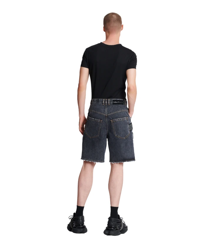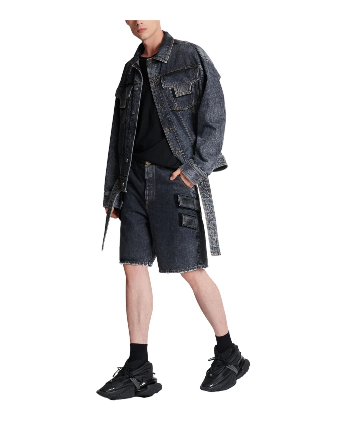 Черные джинсы-бермуды с боковым ремешком Balmain, черный