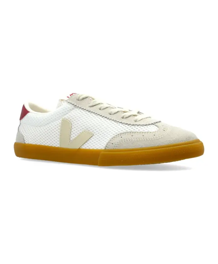 Представляем кроссовки Volley Aircell от Veja - идеальное сочетание французской элегантности и современного дизайна. Эти кроссовки обеспечивают исключительный комфорт благодаря дышащей замше и синтетической сетке. Ключевые особенности: Белый | Бежевый | Красный | Замша | Синтетическая сетка | Дышащая ткань | V-образный логотип | Название бренда на пятке | Резиновая подошва медового цвета