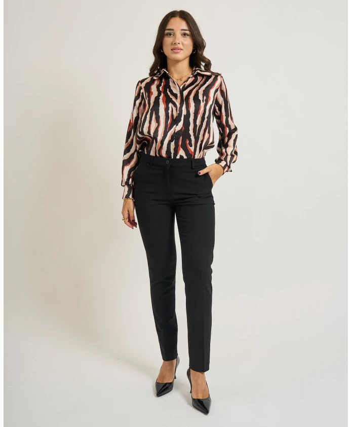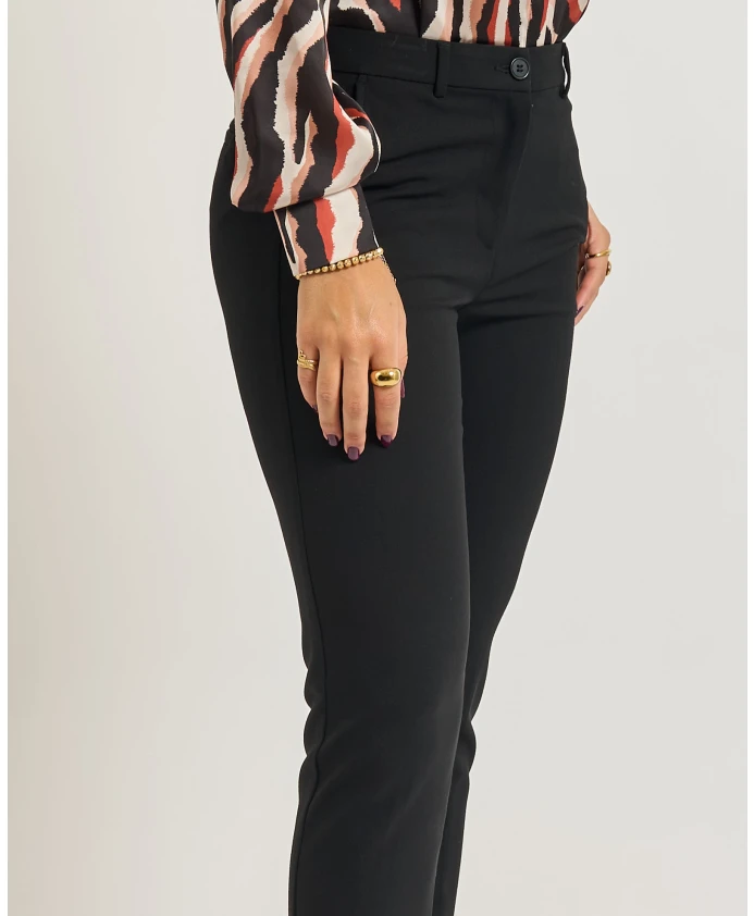 Брюки прямого кроя от Silvian Heach отличаются лаконичным силуэтом, идеально подходящим как для элегантных офисных образов, так и для повседневной носки в стиле smart casual. Они сочетают классический крой с зауженным силуэтом, что позволяет легко вписать их в любой гардероб. Основные характеристики: Черный цвет | Зауженный прямой силуэт | Размеры и посадка: Зауженный крой | Прямой крой