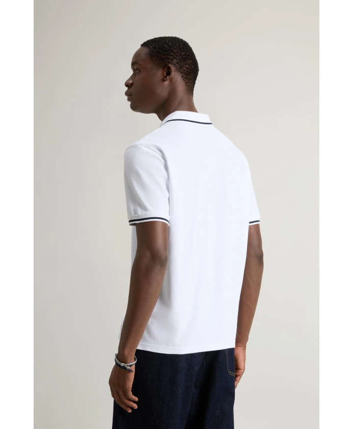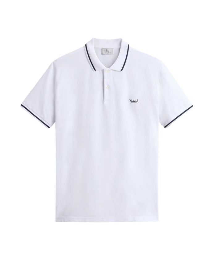 Добавьте графичности своему образу с помощью этой повседневной, но в то же время элегантной рубашки-поло от Woolrich. Изготовленная из эластичного хлопкового пике, эта рубашка-поло приталенного кроя имеет боковые разрезы для максимальной свободы движений. Воротник и рукава отделаны полосатым узором, а вышитая на груди современная интерпретация логотипа Woolrich, выполненного курсивом.