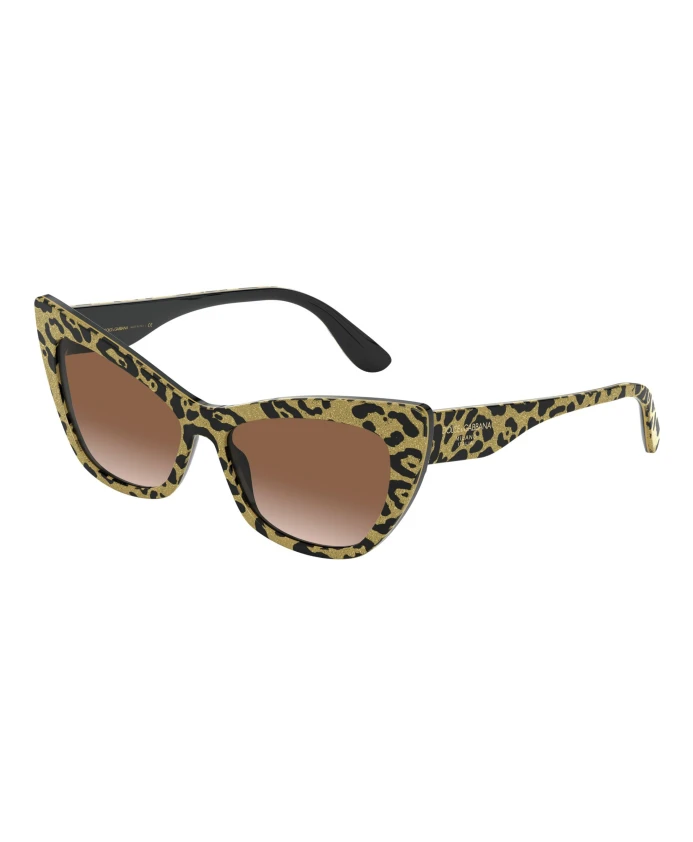 Эти солнцезащитные очки от Dolce & Gabbana с ярким леопардовым принтом, блестками, золотистым и коричневым цветом, созданы как эффектный аксессуар для повседневной защиты от солнца и стильного образа. Ключевые особенности: Многоцветные | Леопардовый принт, блестки, золотистый | Коричневый оттенок | Детали оправы с принтом | Блестки | Леопардовый принт | Размеры и посадка: 56/15/140