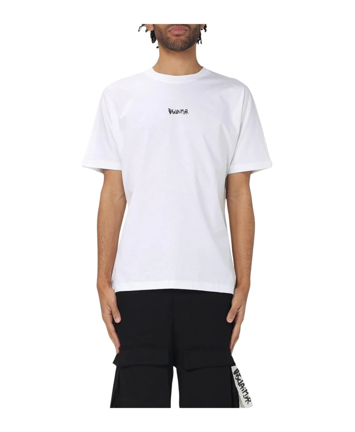 Футболка с короткими рукавами и графическим принтом «Disclaimer» - это удобная повседневная футболка с классическим круглым вырезом и графическими деталями. Она создана для отдыха и легко сочетается с джинсами или шортами, создавая разнообразные повседневные образы. Ключевые особенности: Белый | Круглый вырез | Короткие рукава | Графический принт | Размеры и посадка: Свободный крой