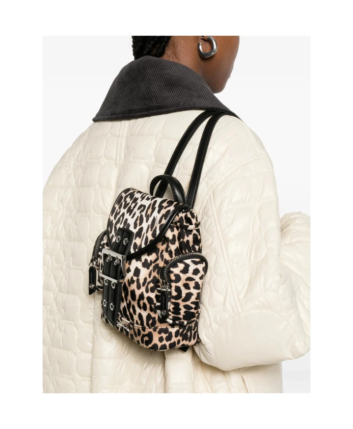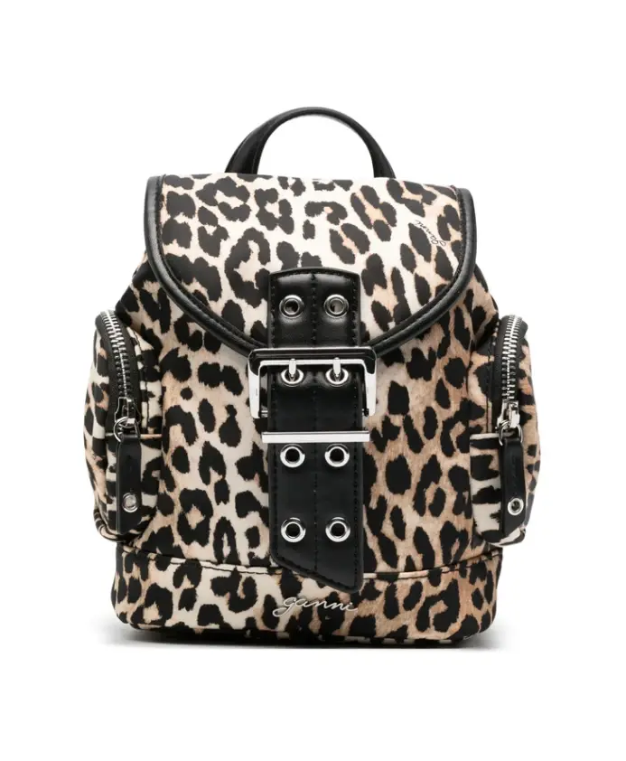 Рюкзак Ganni сочетает в себе практичность и вместительность, а также эффектный леопардовый принт. Он разработан для повседневного использования и предлагает различные варианты переноски. Ключевые особенности: Разноцветный | Нейтральные цвета | Черный | Боковые карманы | Верхняя ручка для переноски | Регулируемые лямки | Застежка на шнурке | Леопардовый принт | Деталь в виде пряжки