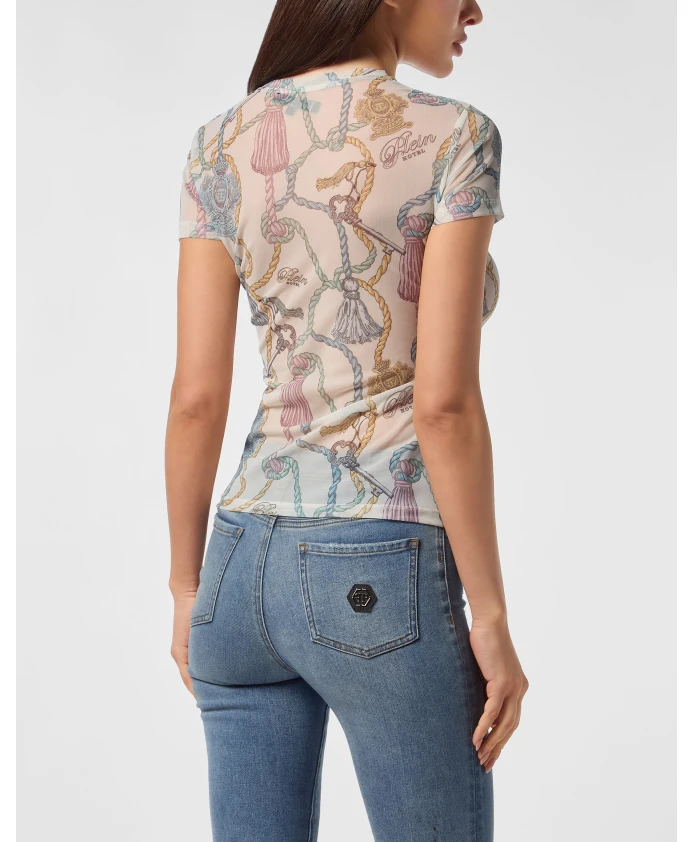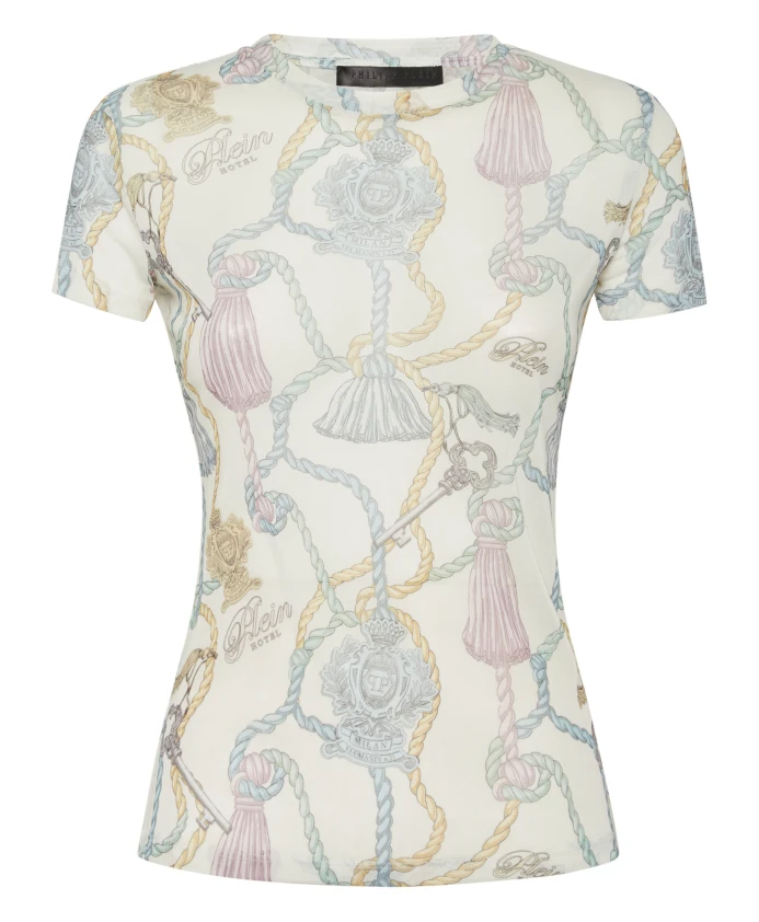 Футболка Philipp Plein Pure представляет собой переосмысление тюля в виде эластичного трикотажа с принтом, созданного для особых случаев и сочетающего в себе тонкую текстуру и изысканные детали конструкции. Ключевые особенности: Многоцветная | Тюль | Эластичность | Двойная строчка | Принт по всей поверхности | Эластичный тюлевый трикотаж | Состав и уход: 66% полиэстер, 34% эластан