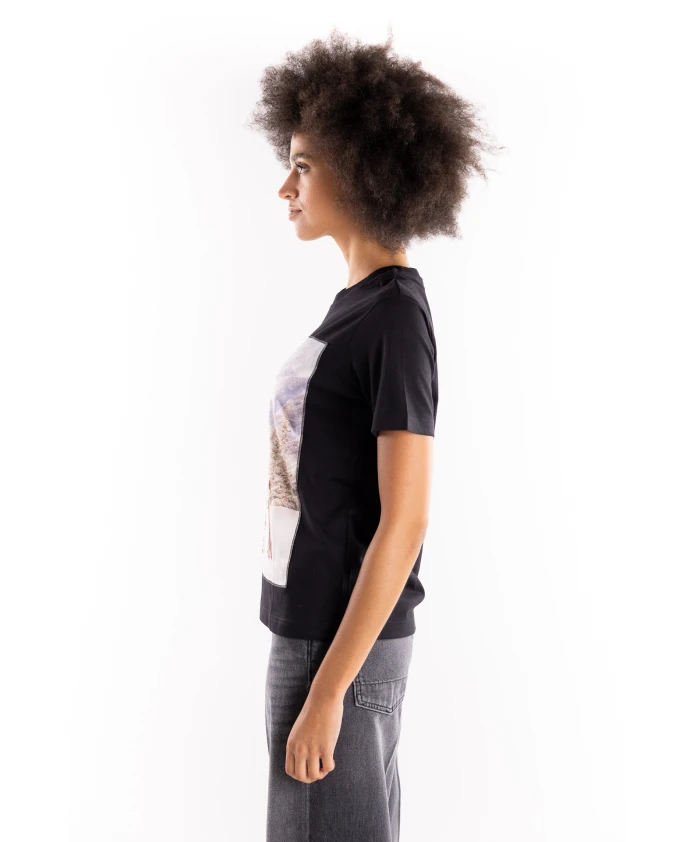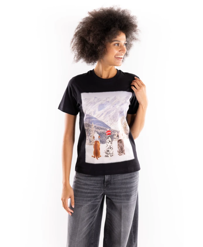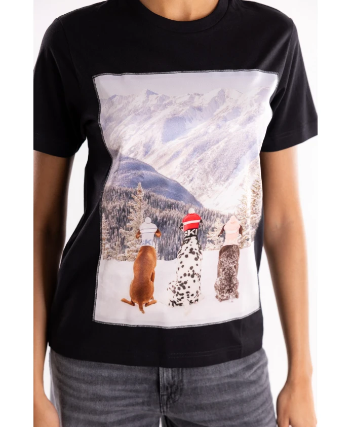 Футболка ORGAMOUNTAIN DOGNERO с круглым вырезом сочетает в себе классический комфорт хлопка и яркий принт на шелковой вставке спереди, создавая изысканный повседневный образ. Ключевые особенности: Черный | Хлопок | Круглый вырез | Короткие рукава | Принт на шелковой аппликации спереди | Размеры и посадка: Стандартный крой | Рост модели 178 см, размер S | Состав и уход: 100% хлопок