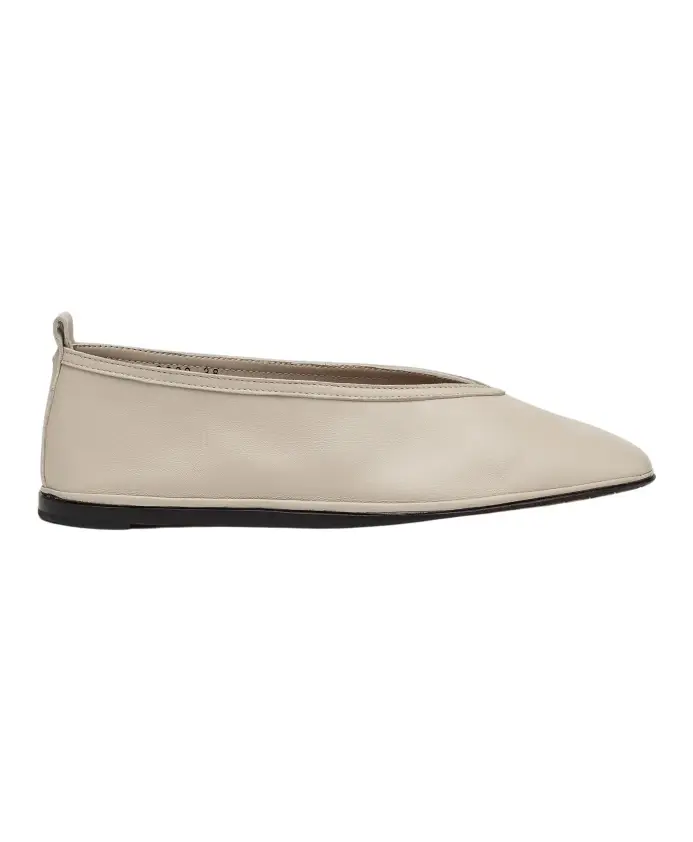 Подчеркните свой стиль с помощью этих балеток Elia Maurizi. Изготовленные вручную из кожи растительного дубления в стиле «саккетто», эти минималистичные балетки имеют тонкую плоскую подошву и небольшой каблук-танкетку. Цвет слоновой кости и верх из телячьей кожи добавляют элегантности. Без подкладки, с кожаной подошвой и стелькой, эти балетки соответствуют стандартному размеру.