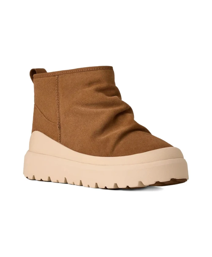 Оставайтесь в тепле и выглядите стильно этой зимой в этих мужских коричневых замшевых зимних сапогах UGG на платформе, с петлей для удобного надевания, сборками сверху и резиновой подошвой. Изготовлены из 100% натуральной кожи внутри и снаружи, с резиновой подошвой. Сапоги UGG поначалу сидят плотно, но со временем подкладка растянется. Рекомендуем выбирать свой обычный размер.